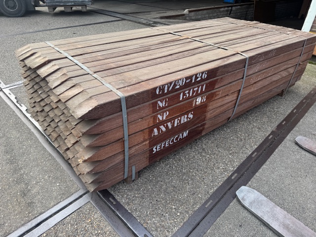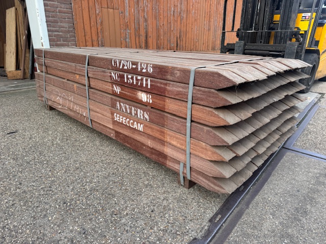 Geschaafde azobé palen zijn vierkante houten palen gemaakt van azobé (ook wel bekend als azobe of bilinga), een zeer hard en duurzaam tropisch hardhout uit West-Afrika (Lophira alata). Het woord “geschaafd” betekent dat de palen na het zagen machinaal glad geschuurd/geschaven zijn. Dit geeft een nette, gladde afwerking met vaak ronde hoeken, in tegenstelling tot ruw bezaagde (ruwe) palen.Belangrijkste kenmerken